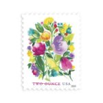Adorn your special event correspondence with the new Wedding Booms stamp from the U.S. Postal Service@. This stamp canaccommodate the weight of heavy invitations for birthdays. weddings. anniversaries. and other special moments.This charming stamp features an abstract bouquet of flowers and greenery rendered in vibrant ink and gouache. Add a touch of