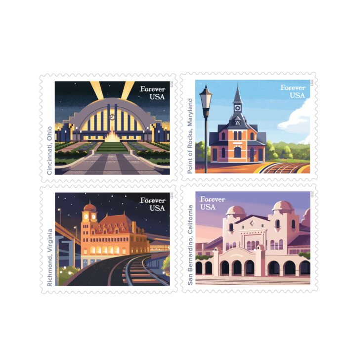 More than simply places to buy tickets and wait for a train, railroad stations exude history, romance, and the optimism associated with forward motion. Noteworthy railroad stations began brightening the American landscape by the 1870s and, although many fell to the wrecking ball once they had outlived their original purpose, hundreds survived. This issuance features five architectural gems that continue to play an important role in their community.