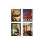 The first row showcases, from left to right, the meeting room at Hancock Shaker Village, Pittsfield, Massachusetts; the tannery at the Shaker Village of Mount Lebanon, New Lebanon, New York; a spinning wheel from Fruitlands Museum, Harvard, Massachusetts; and staircases in the Trustees’ Office and Guest House at the Shaker Village of Pleasant Hill, Harrodsburg, Kentucky.