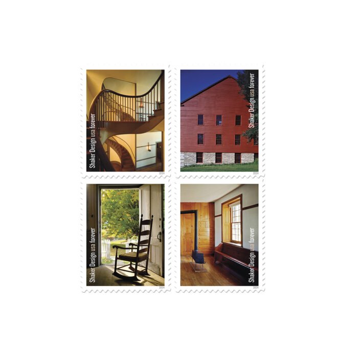 The U.S. Postal Service celebrates the refined, timeless beauty of Shaker design with 12 stamps featuring evocative photographs by Michael Freeman. Devoutly religious and committed to simple living, the Shakers imbued everything they made with uncommon grace. From modest oval boxes to furniture, textiles, and even architecture, they created pieces renowned worldwide for their simplicity, utility, and impeccable quality.
