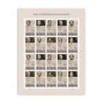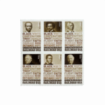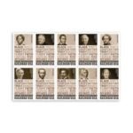 Each stamp in the issuance features 1 of the brave individuals in a sepia-toned portrait. Below each portrait are eight bold lines oftext in shades of brown set against a white background.
